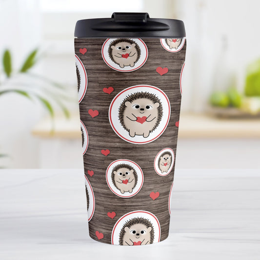 Rustic Wood Red Heart Hedgehog Travel Mug