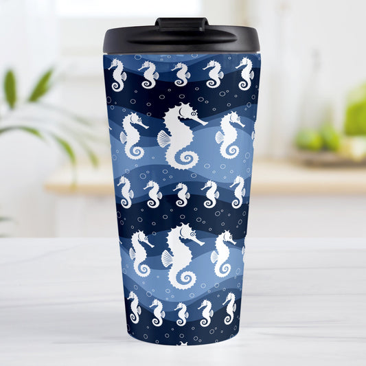 Wavy Blue Seahorse Travel Mug