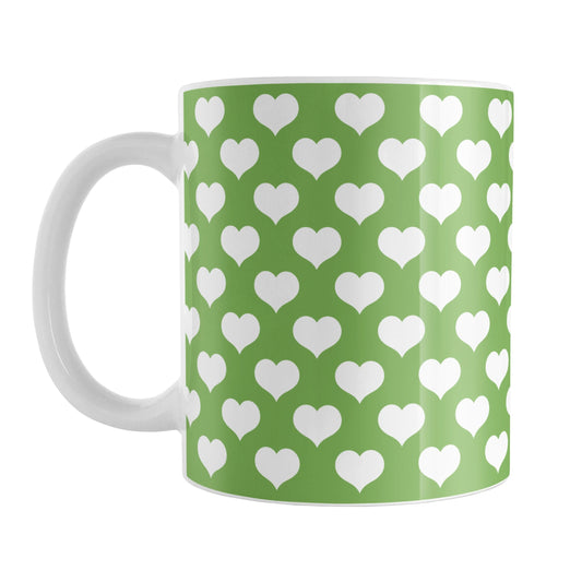 White Hearts Pattern Green Mug
