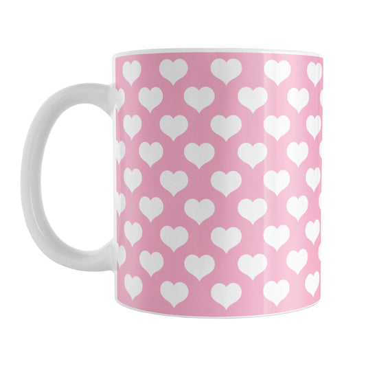 White Hearts Pattern Pink Mug