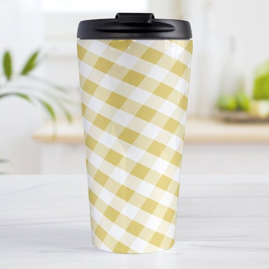 Yellow Gingham Travel Mug