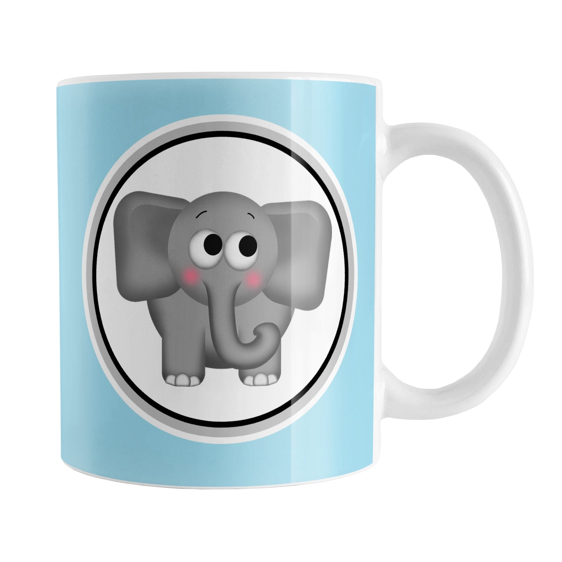Introducing the Adorable Light Blue Elephant Mug, a charming addition to your drinkware collection. This mug features an endearing gray elephant inside a white circle on both sides, set against a soothing light blue background that wraps around the mug up to the handle. It's perfect for those who love elephants, cute animal designs, and the color blue, this mug is sure to become a favorite.