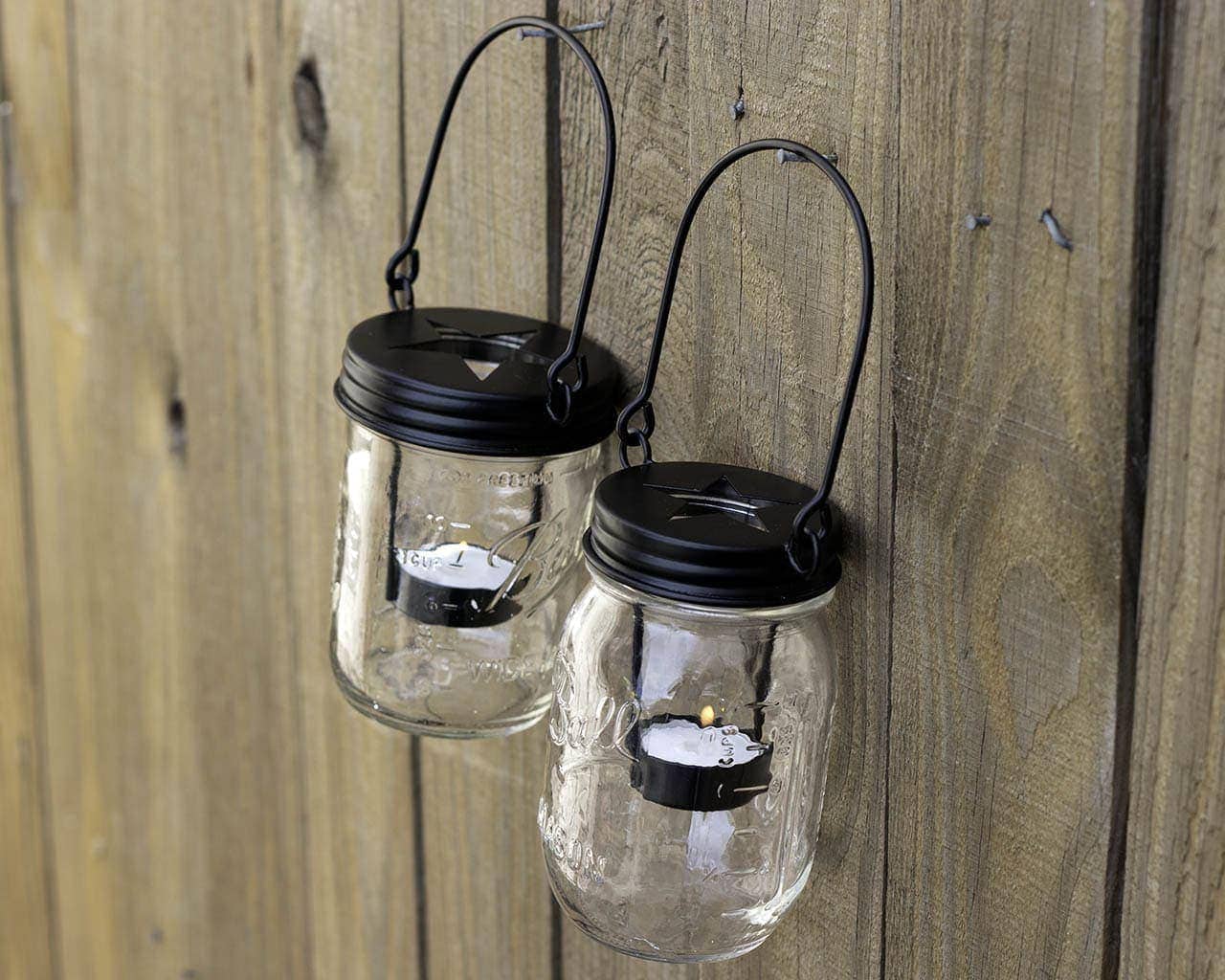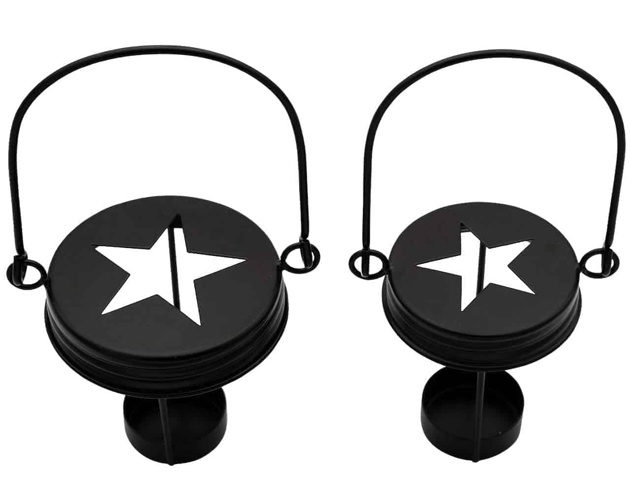 Black Star Cutout Tea Light Candle Holder Lids With Handles for Mason Jars 3 Pack