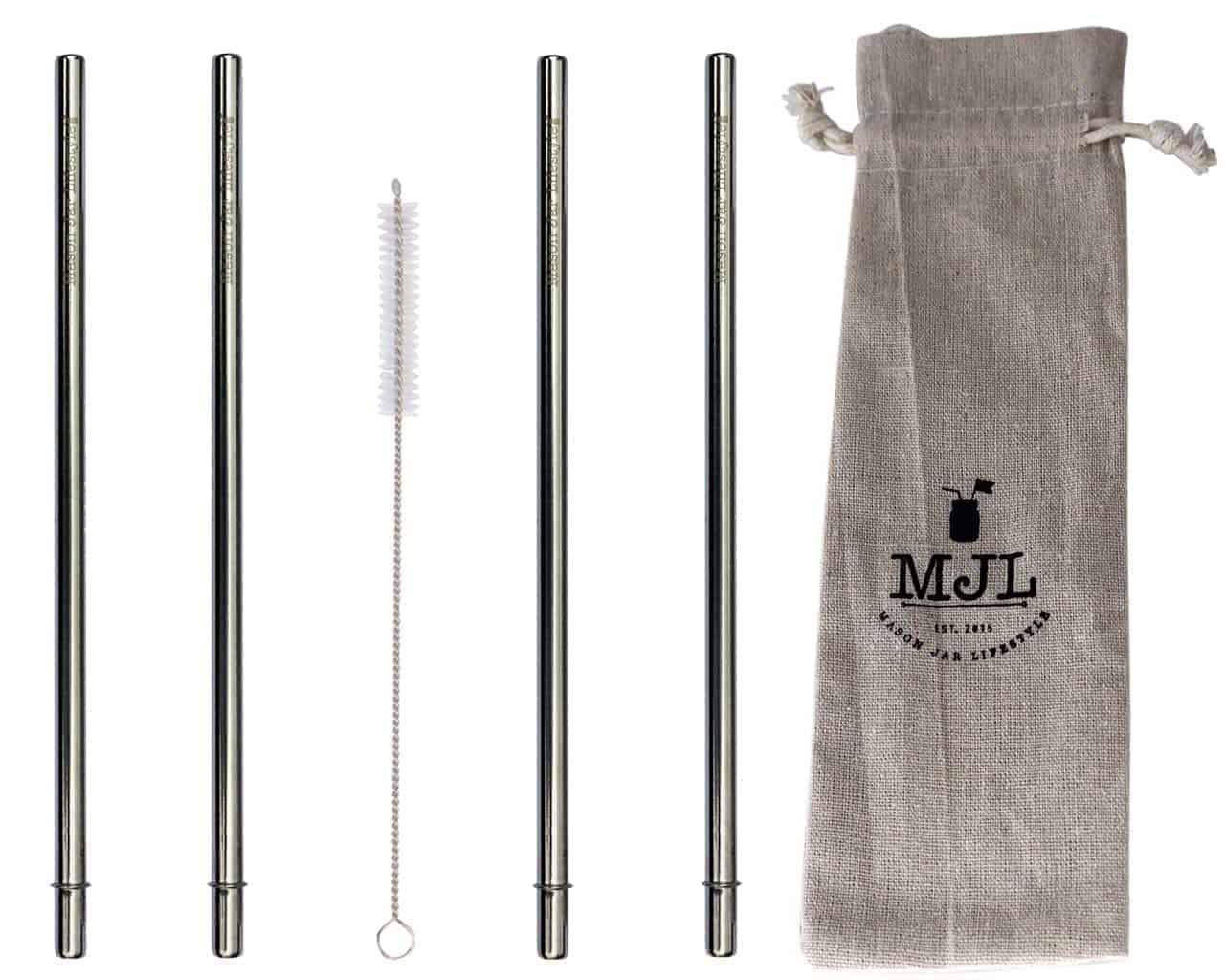Extra Long Safer Rounded End Stainless Steel Straws for Half Gallon Mason Jars 4 Pack