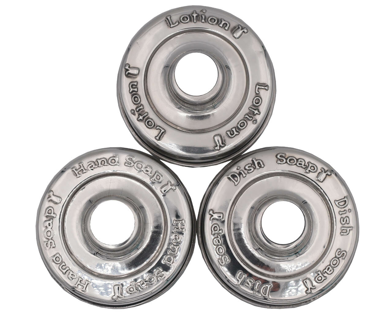 "Hand Soap," "Dish Soap," and "Lotion" Embossed Shiny Dispenser Pumps for Regular Mouth Mason Jars 3 Pack