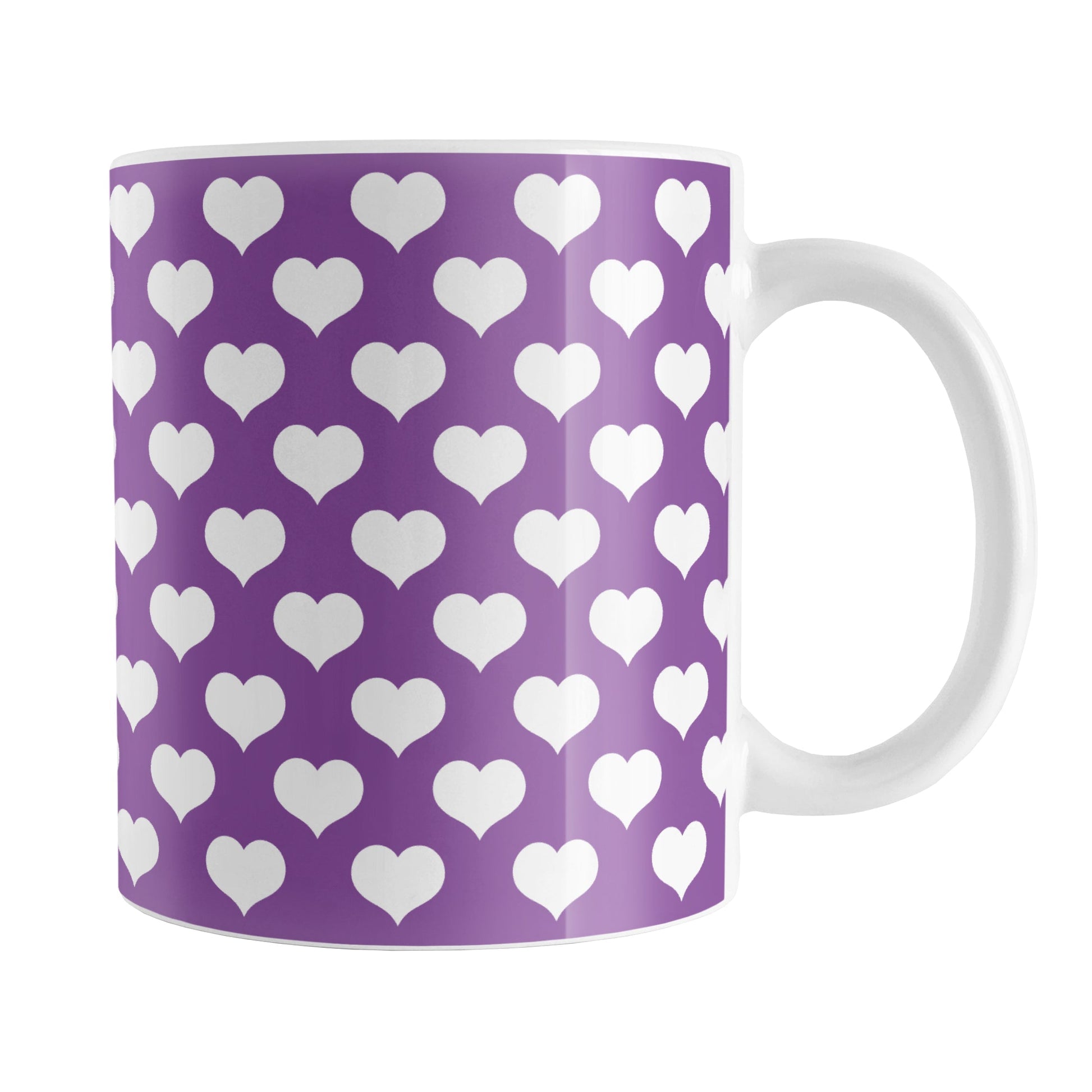 Introducing the White Hearts Pattern Purple Mug, a stunning blend of elegance and functionality designed to bring joy to your everyday beverage experience. This charming mug features a delightful design of white hearts arranged in a polka-dotted style pattern against a rich purple background. The pattern wraps around the mug up to the handle, creating a cohesive and eye-catching look. Perfect for those who adore heart motifs and the color purple, this mug is a stylish addition to any drinkware collection.