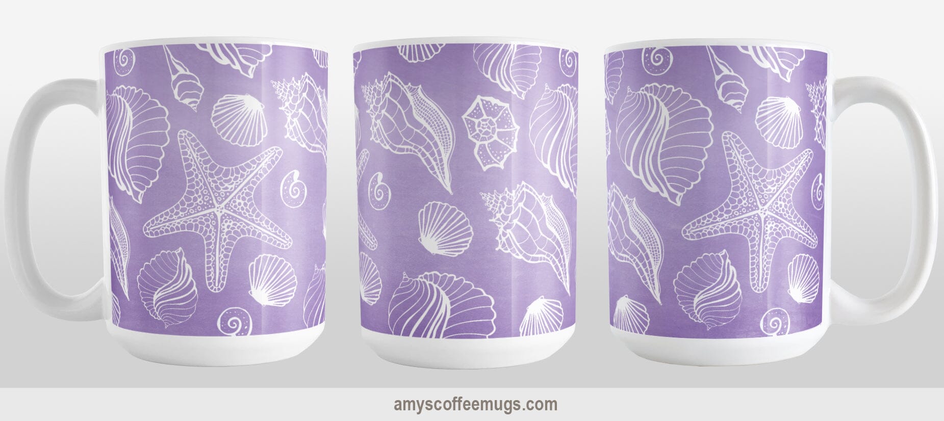 For those who adore the allure of seashells and the calming ambiance of the beach, this mug is an absolute treasure. The delicate white seashells evoke a sense of serenity and nostalgia, reminiscent of peaceful moments spent by the ocean. The purple background adds a unique and stylish touch, making this mug perfect for adding a pop of color to your beach house or coastal-themed decor. It's an excellent choice for anyone who wants to infuse their daily routine with a hint of seaside magic.